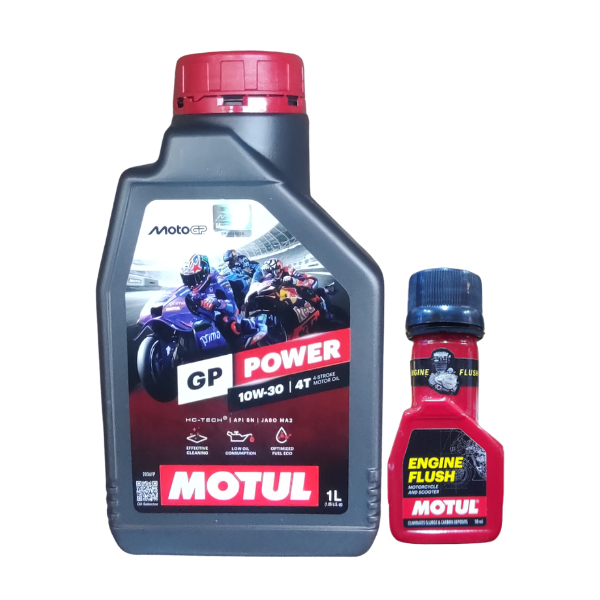 Give your motorcycle the professional treatment it deserves with the Motul Moto GP Power 10W30 1-Litre Engine Oil and 50ml Engine Flush Combo. Designed for riders who demand peak performance and longevity from their engines, this power-packed duo ensures your bike runs cleaner, smoother, and stronger.
